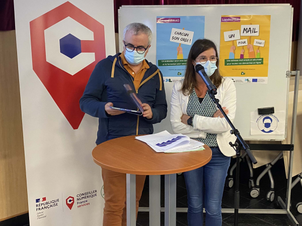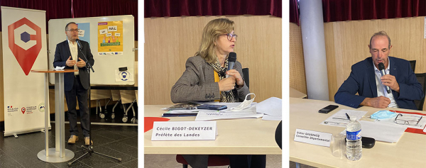 Après une présentation des avancées de la démarche par Renaud Lagrave, directeur de l’Alpi, la Préfète Cécile Bigot-Dekeyzer et le conseiller départemental Didier Gaugeacq, deux témoignages ont souligné le rôle des intercommunalités dans l’animation locale de la stratégie d’inclusion numérique.